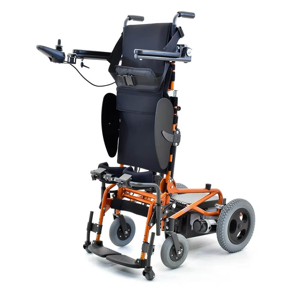 Quando la carrozzina passa dalla posizione seduta a quella eretta, il baricentro del bambino si sposta. Cambia la distribuzione del peso e tutta la struttura deve adattarsi in modo controllato.